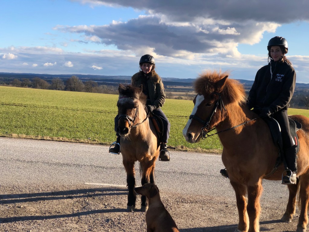 Vår familj betsår av Elena och Miguel med döttrarna Naomi och Livia och vi bor på en hästgård mitt i Skåne. Förutom hästar så finns här även höns och några ankor.